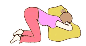 跪着的同时身体向前倾,将手放在床上或者抱住支撑物,两腿分开;也可以匍匐在地。